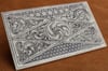 This is a Hard plastic replica of an engraving showing 5 variations on bright cut, and 2 styles of geometric fill patterns. Perfect for students or collectors. Business card sized.